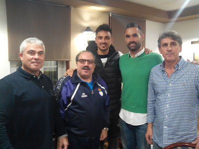 Al termino de la entrega de diplomas, tuve la oportunidad de charlar con el portero homenajeado; con Leles, ex jugador blanco, que le entregó la distinción y con David de la Torre, presidente de la referida peña.